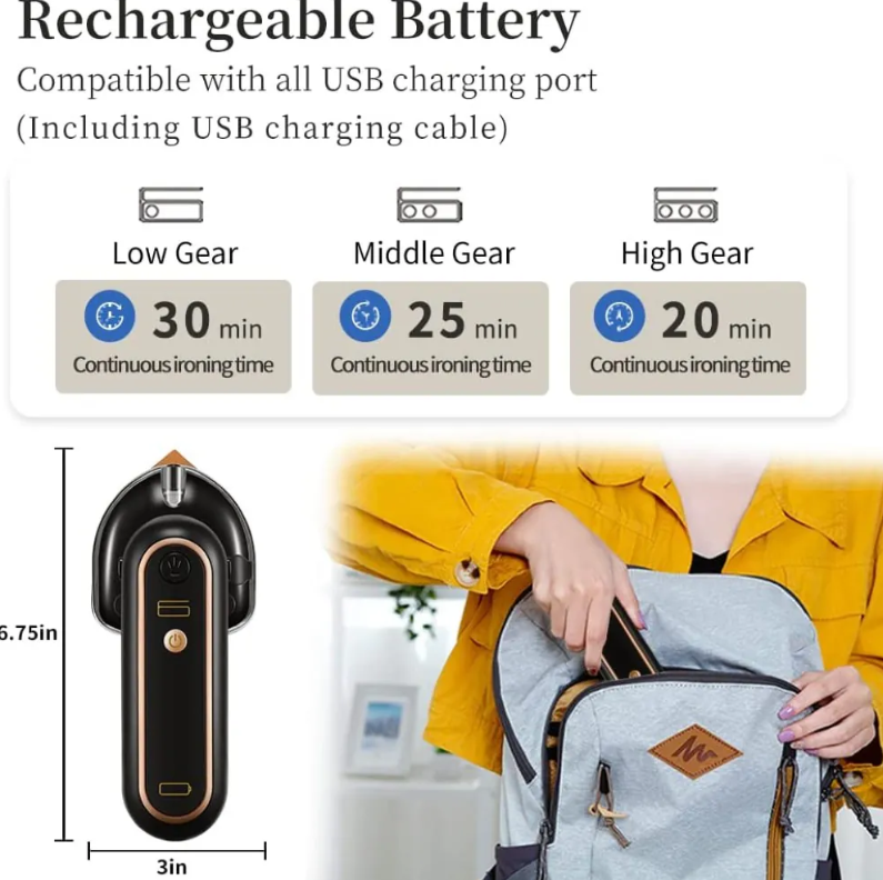 ✔ Travel-Friendly Design (Image) – Lightweight and handheld for easy portability; great for home, travel, or on-the-go garment care.